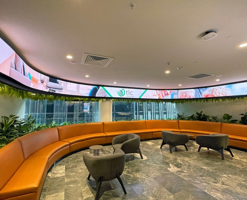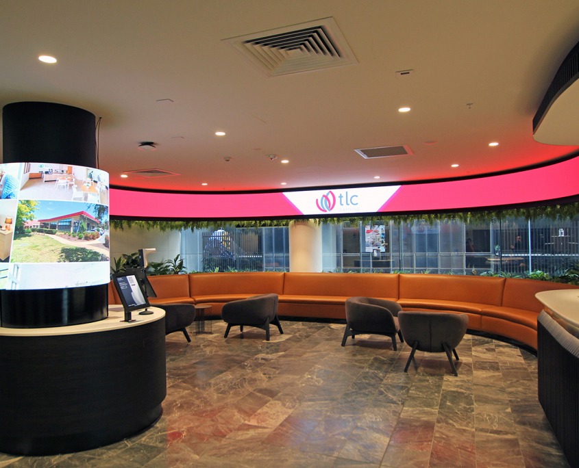 New VuePix Infiled digital platforms have been installed in the reception area of TLC Aged Care facility, welcoming all the patrons and guests.