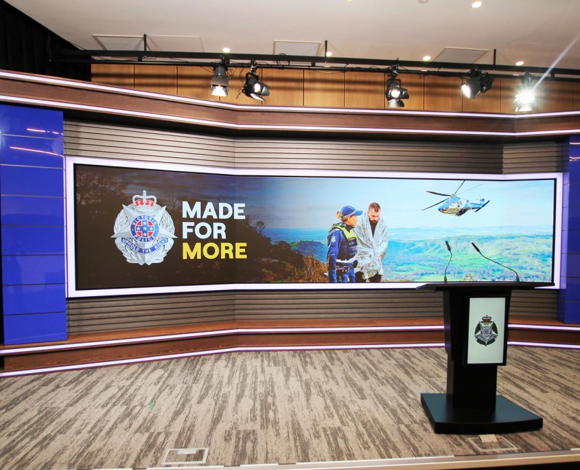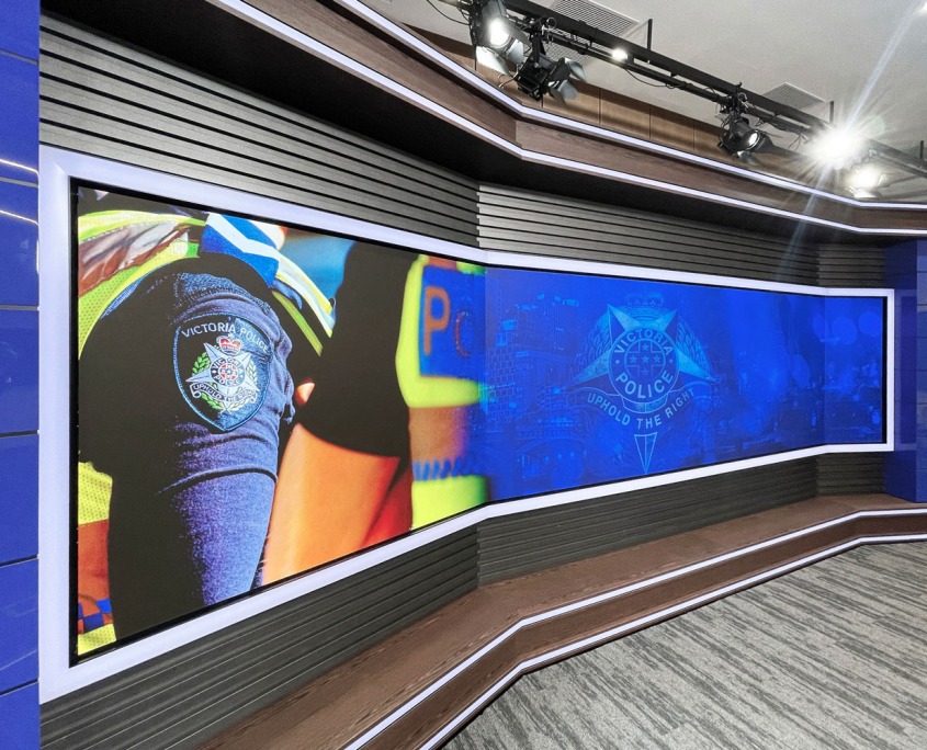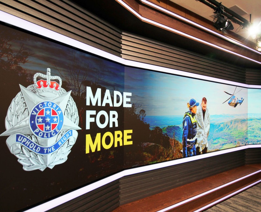 A largescale Digital Wallpaper platform featuring over 5.1 million pixels has been installed as a centrepiece of the new Media Centre, located at the new Victoria Police Headquarters in Docklands, Melbourne.