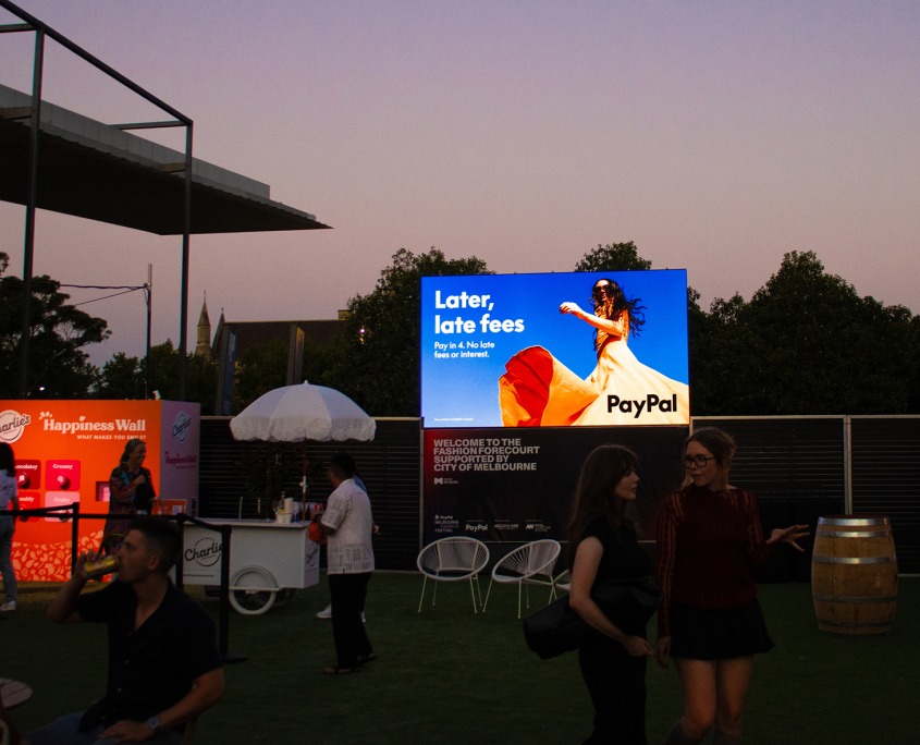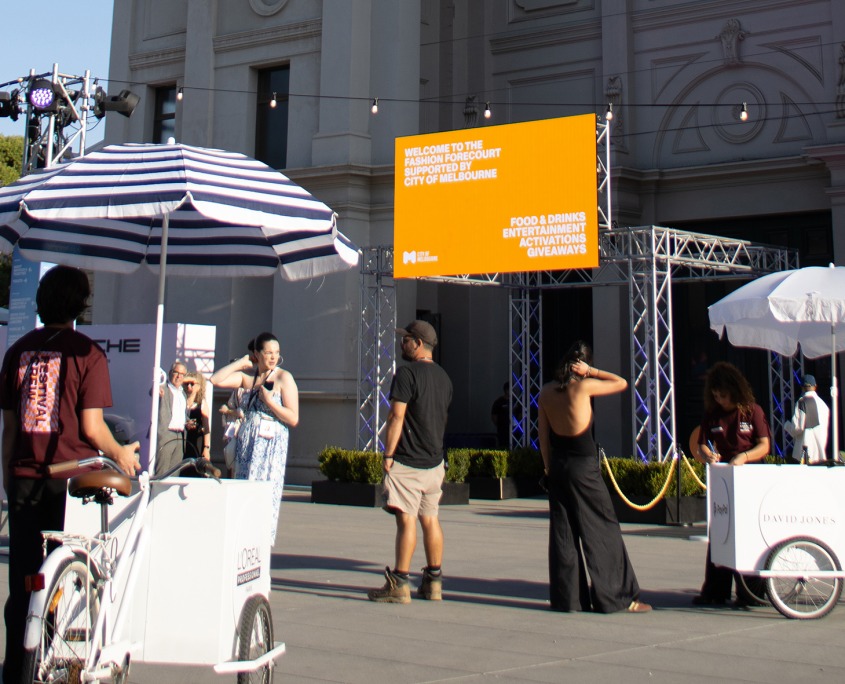 The precinct pulsed with energy, elevated by striking VuePix Infiled LED screens that delivered high-impact visuals and defined its bold, fashion-forward vibe. Above the main entrance, a large GX Series screen greeted fashion lovers with vibrant content. Near the food and activity zone, an ART Series digital display delivered crisp, engaging graphics for mingling guests. The DJ area came alive with a sleek ART screen mounted along a shipping container, adding a dynamic visual edge that amplified the music experience.